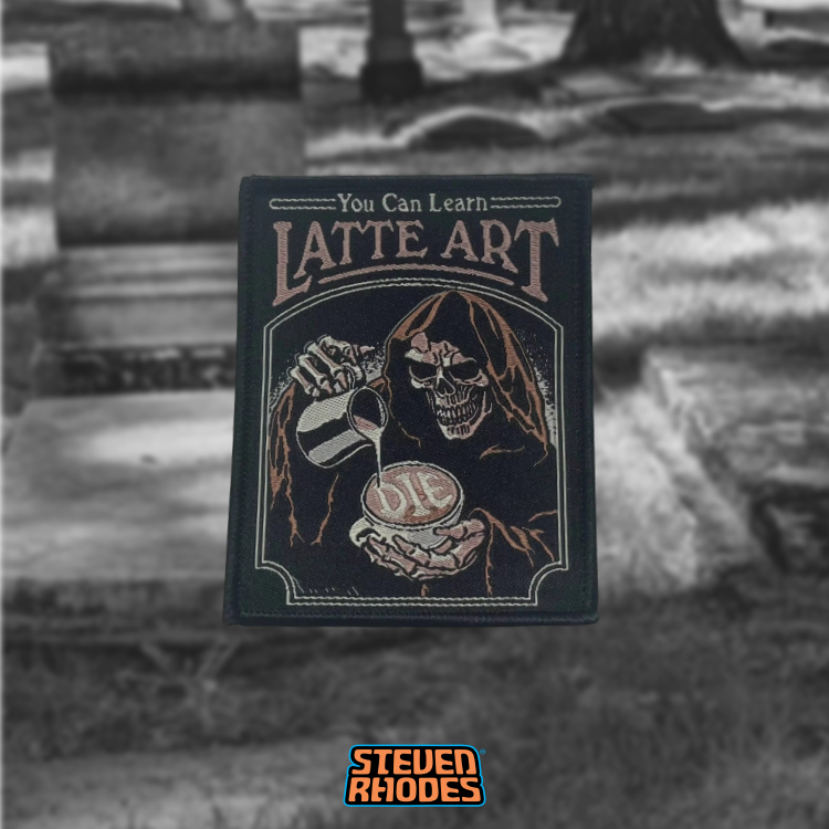 For baristas of the underworld and coffee snobs with a dark streak, this patch serves up frothy sarcasm at its finest. A little milk foam, a little death wish, and a lot of attitude—all in an easy iron-on package that adds instant chaos to any outfit or accessory.
